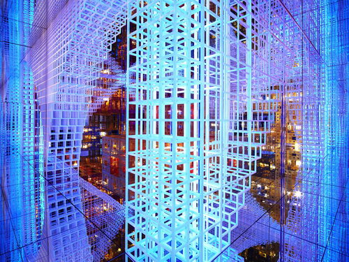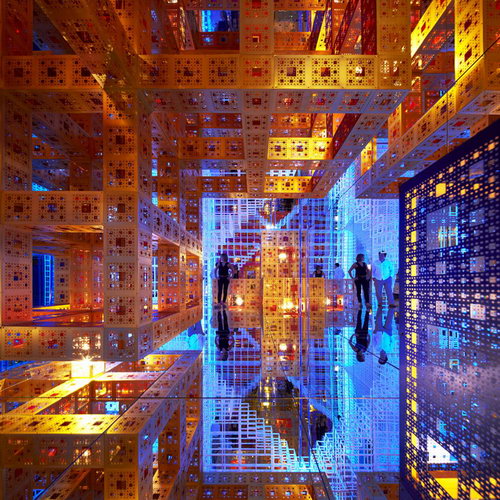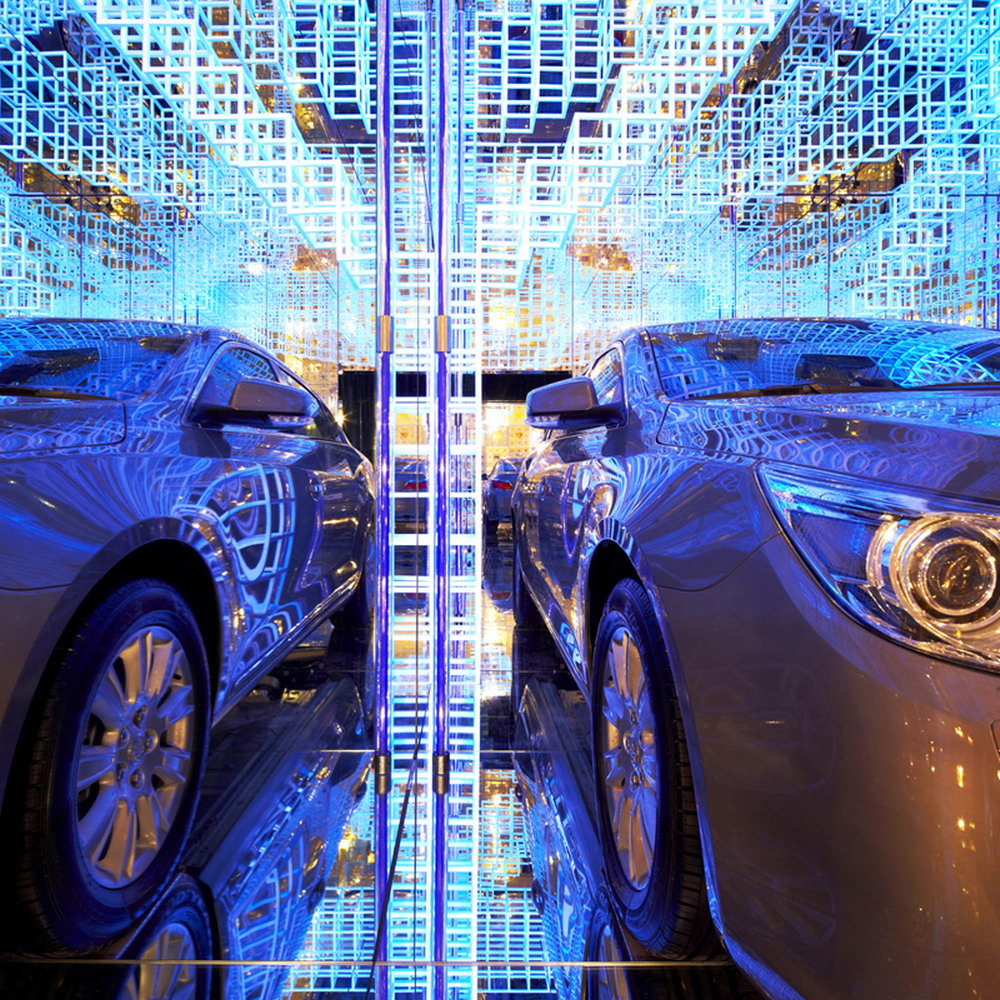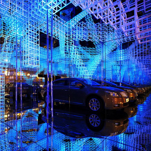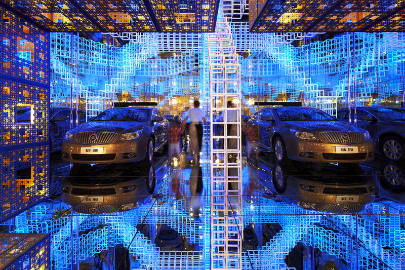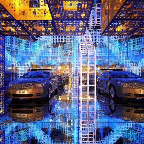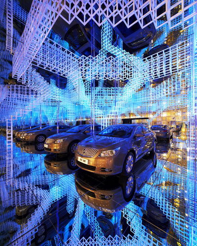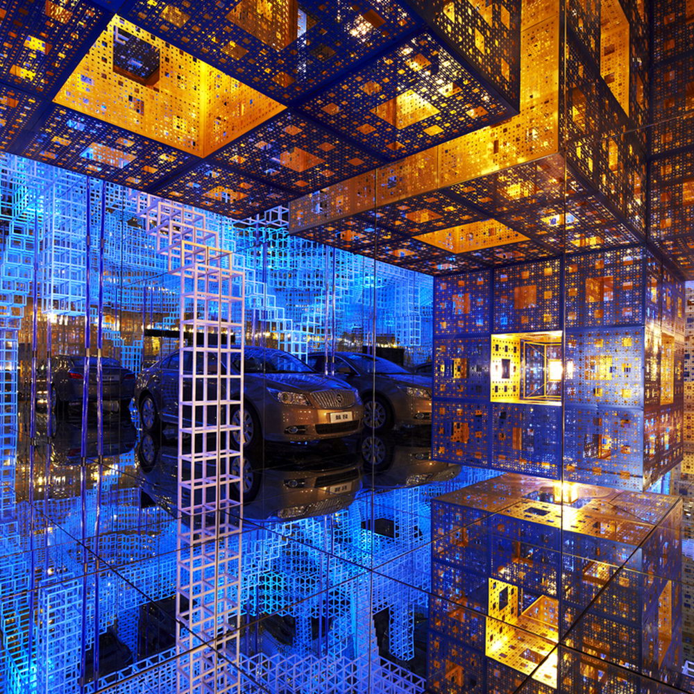 Buick worked together with Mr. Serge Salat, the famous French art installation master, and made their first attempt to introduce modern industrial products into the space installation made of infinite virtual images. By using high-tech materials and cutting-edge technology, they combined video art, computer art, music, sculpture and architecture with boundless virtual images to form an enclosed and secret universe.