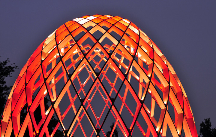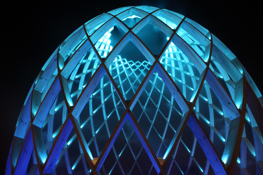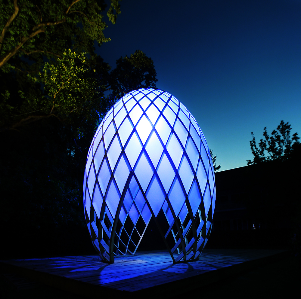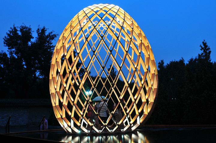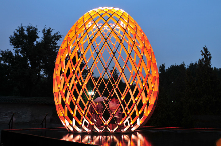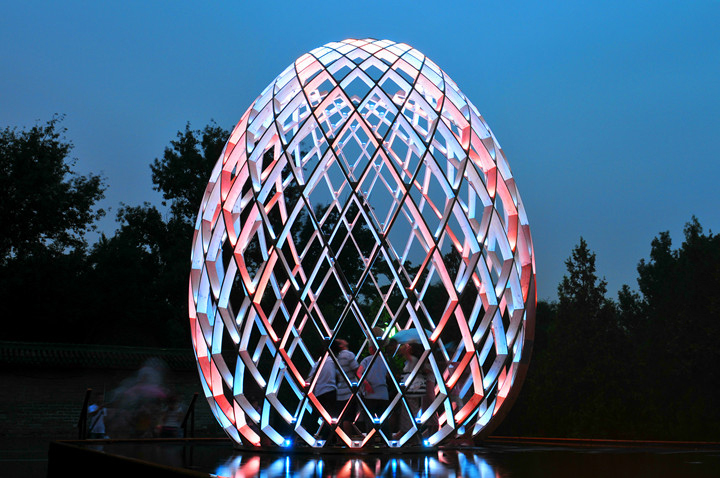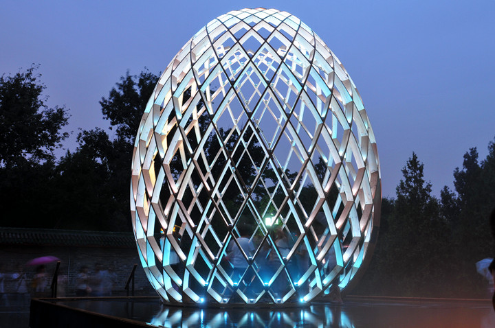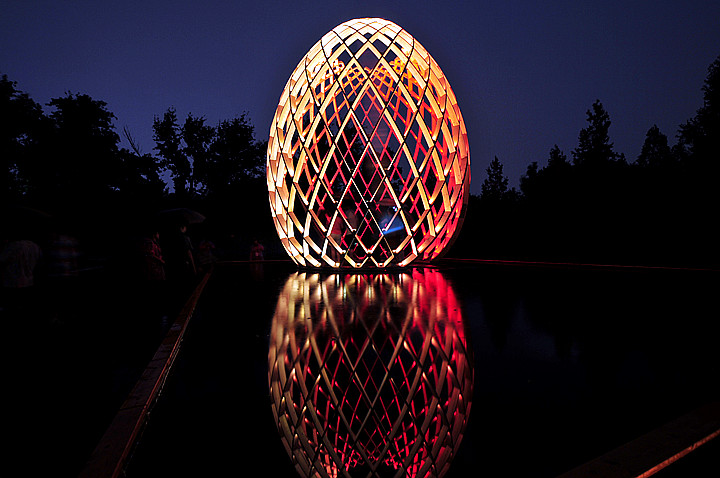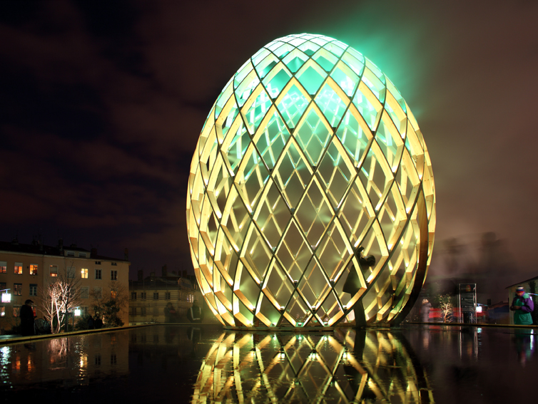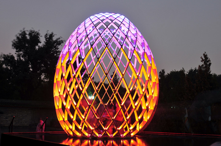 OVO is a multi-sensory art work. Visitors can walk into the egg-shaped sculptures to feel the impression induced by lights, water, sounds as well as the dynamic structures based on the golden ratio. OVO, a masterpiece of philosophy and inspiration beyond art, produces various symbolic associations in your mind, while suggesting the inner connection between the growth of a cocoon from breeding to mature period and the development of the world from its origin. The brilliant illumination created by RGB-LED lights with low power consumption sets off the magnificence of the egg-shaped sculptures. Each LED light can be set and controlled separately, providing unique lighting effects to the works, which shine with colorful radiance in vivid presentation.
